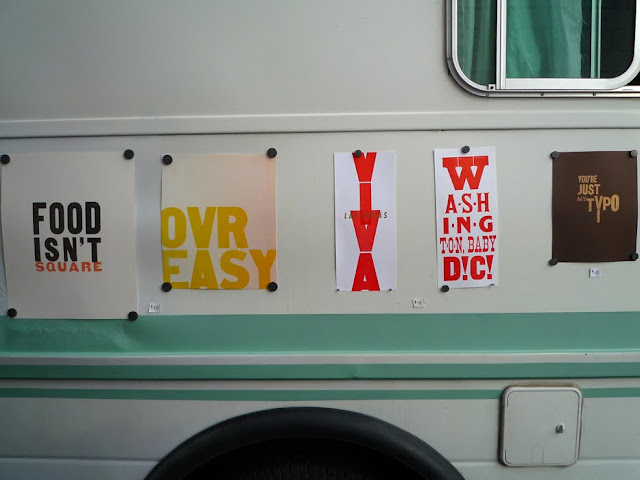 Today on my way home from work I stopped by Open Book to check out the Moveable Type truck, a cool little studio set up in a 1982 Chevy Step Van. Funded through Kickstarter, the truck was converted into a fully functioning letterpress studio that travels around the country so people can learn more about the art of letterpress through demos, workshops, etc. It's a sweet little space, and a great project. Check out how an old linens van was converted into the workspace here. Thanks for stopping in Minneapolis, Moveable Type!